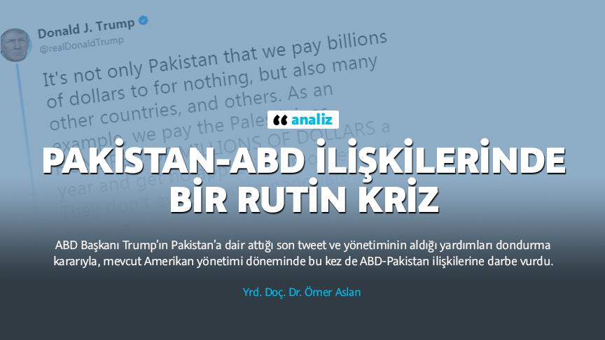 ABD Başkanı Donald Trump’ın Pakistan’a dair attığı son tweet ve yönetiminin aldığı yardımları dondurma kararıyla ABD-Pakistan ilişkileri gerildi. Başkan Trump, geçtiğimiz Ağustos ayında açıkladığı ‘Güney Asya ve Afganistan’ stratejisinde üstü örtülü şekilde eleştirdiği Pakistan’ı bu kez açıktan hedef aldı. Trump yönetiminin Pakistan için 2016 yılından kalma, Pakistan’ın ABD’den (ikinci el) silah ve teçhizat almak için kullanacağı 255 milyon dolarlık ‘Dış Askeri Finansman’ (FMF) desteğini dondurduğu açıklamasının ardından ABD Dışişleri Bakanlığı da Pakistan’a olan yardımların bazı istisnai kalemler hariç tamamen dondurulduğunu açıkladı.