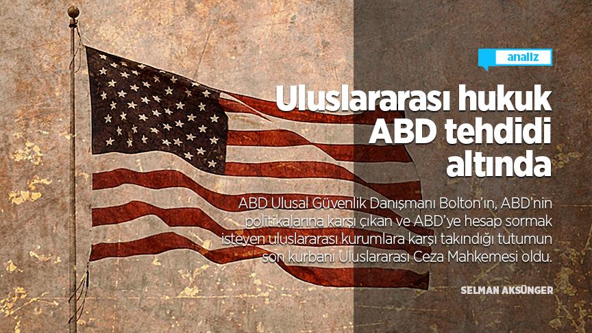 ABD Trump yönetimiyle birlikte, uluslararası hukuka riayet etmeme ve etkisi altına alamadığı uluslararası kurumların işleyişini engelleme hususundaki çabalarına hız verdi. İnsan haklarına aykırı göçmen yasaları, İsrail’deki büyükelçiliğini Kudüs’e taşıması, İran ile yapılan nükleer anlaşmadan tek taraflı çekilmesi ve son olarak UCM yetkililerini tehdit etmesi, uluslararası düzeninin temellerini sarsan politikaların sadece bazıları. Bu politikaların en ağır sonucunun ise Rusya, Çin, İsrail ve diğer bir çok ülkenin, ABD’nin kararlarını gerekçe göstererek uluslararası hukuku ihlal eden politikalar benimsemeye başlamaları olarak görülüyor.