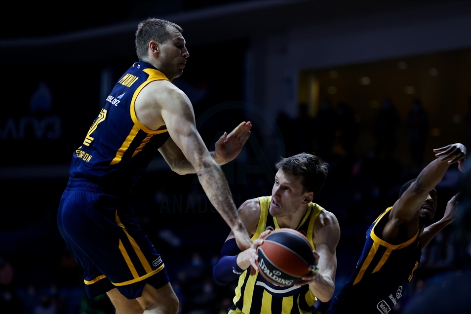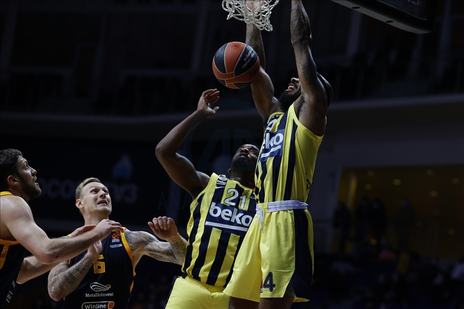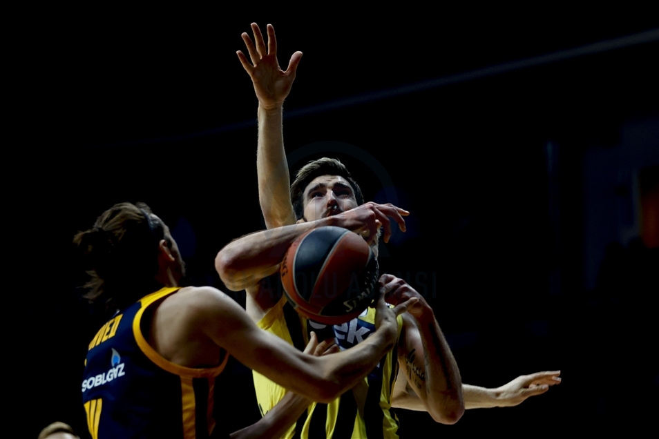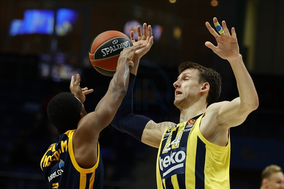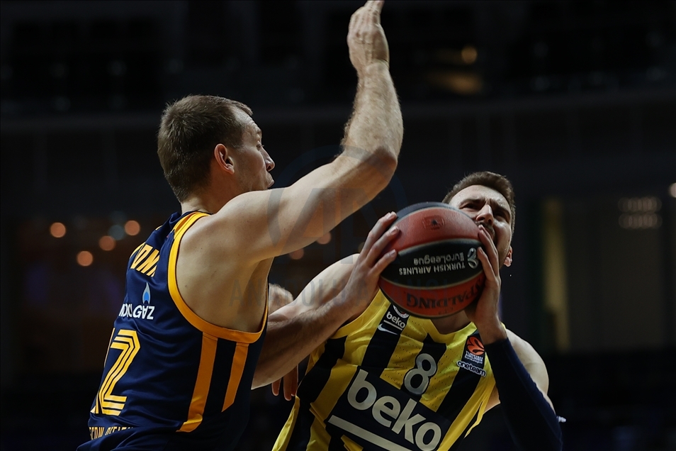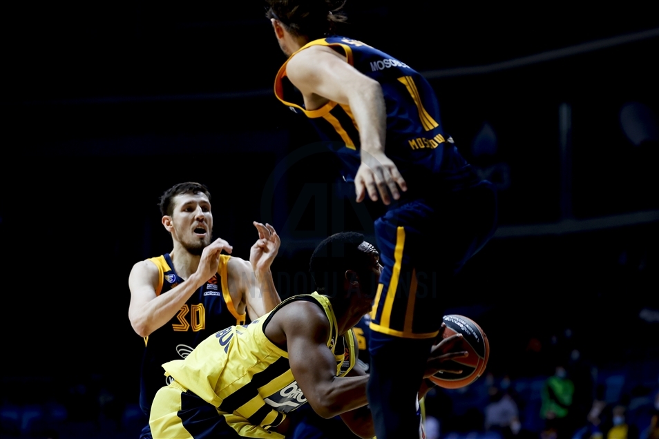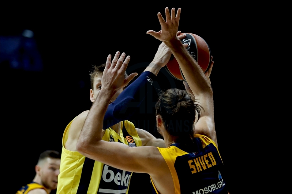 Basketbol THY Avrupa Ligi'nde Khimki Moskova, Fenerbahçe Beko ile Arena Mytischi’de karşılaştı. Fenerbahçe Beko oyuncusu Melih Mahmutoğlu (10) rakibi Khimki Moskova oyuncusu Evgeny Voronov (18) ile mücadele etti. ( Sefa Karacan - Anadolu Ajansı )