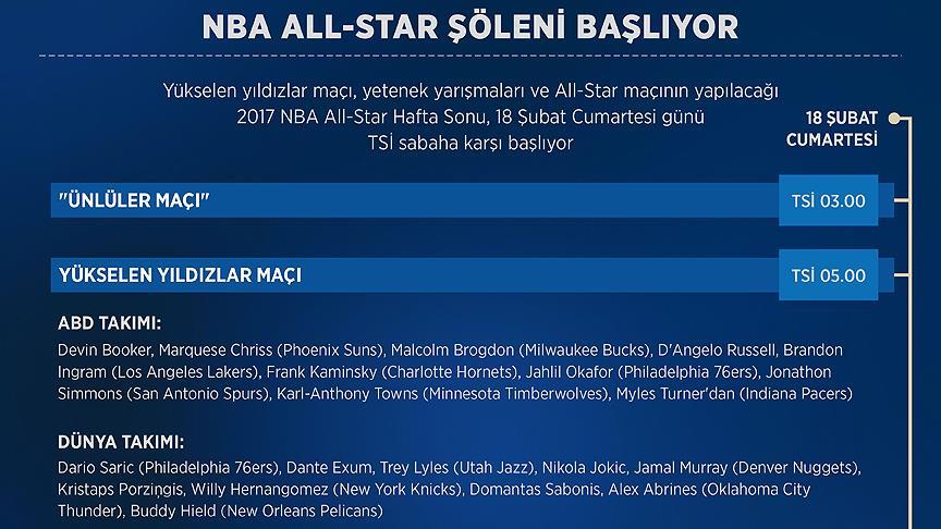 Ayrıca TSİ 22.30'da NBA Gelişim Ligi'nde forma giyen oyuncuların mücadele edeceği D-Lig All-Star maçı da yapılacak.