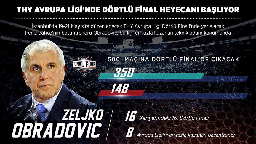 Fenerbahçe Erkek Basketbol Takımı Başantrenörü Zeljko Obradovic, Avrupa Ligi kariyerinde 500. maçına İstanbul'daki Dörtlü Final'de çıkacak.