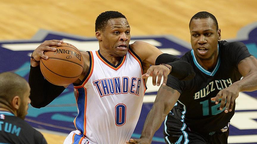 Amerikan Basketbol Ligi'nde (NBA) Oklahoma City Thunder'ın yıldızı Russell Westbrook, Charlotte Hornets'a 113-101 yenildikleri maçta sezonun 40'ıncı "triple-double"ını yaparak Oscar Robertson'ın rekoruna bir adım daha yaklaştı.
