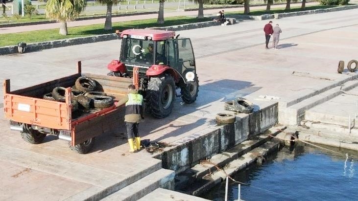 Deniz canlılarına zarar verecek düzeydeki atıkların toplandığı belirtilen açıklamada, dalgıçların deniz dibinden bir traktör dolusu araç lastiği, cam ve plastik şişe, maske ve çakmak gibi malzemeler çıkardığı belirtildi.