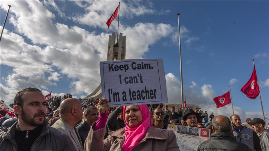 Tunus'ta binlerce öğretmen, Eğitim Bakanı Naci Cellul'un eğitim politikasını protesto etti.