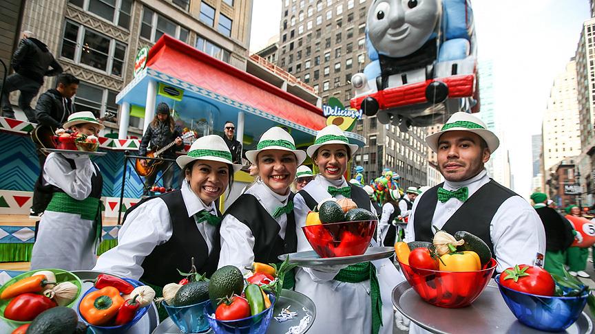 "Sünger Bob," "Snoopy" ve "Hello Kitty" gibi ünlü çizgi film karakterlerini temsil eden dev balonların renk kattığı yürüyüşü, yaklaşık 3 milyon kişi Manhattan sokaklarında izledi.