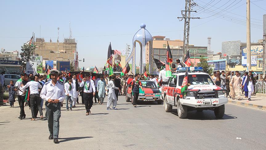 Ülkenin kuzeyindeki Mezar-ı Şerif kentindeki kutlamalarda yüzlerce kişi, ellerindeki Afgan bayrakları ile ''Yaşasın Afganistan'' sloganı atarak şehir merkezine yürüdü.