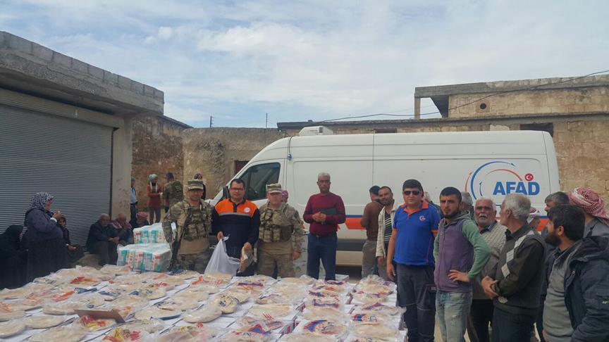 TSK'nin Twitter hesabından yapılan paylaşımda, Afrin'de, Türk Silahlı Kuvvetleri ile koordineli olarak AFAD ekipleri tarafından Mağaracık köyünde 108, Aranda köyünde 35 aileye gıda ve hijyen malzemesi yardımı yapıldığı belirtildi.