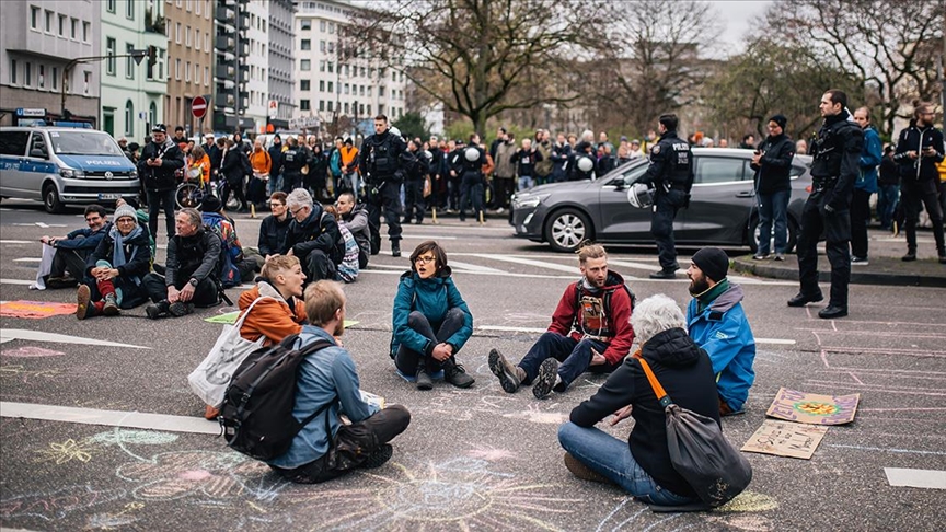 Kendi aralarında organize olup polise bildirmeden aniden eyleme başlamalarıyla bilinen "Son Nesil" aktivistleri Köln şehrindeki Eberplatz'da protesto gösterisi yaptı.