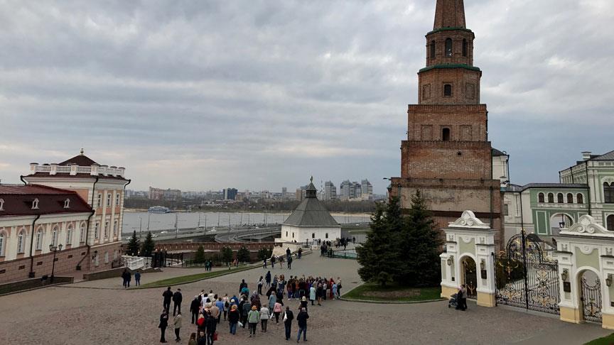 Eğlencesiyle, sanatıyla, iş hayatıyla, gösterilerle, her türlü tezat ve rengin bir arada yaşadığı şehrin hemen her tarafından görülebilen yüksek bir tepeye inşa edilmiş Kazan Kremlin Sarayından gün batımını izlemek, farklı bir heyecan uyandırırken, kentin üzerinde dans eden bulutlar ve nehir enfes manzaralar ortaya çıkıyor.