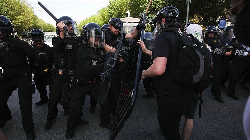 ABD'nin Minneapolis kentinde polis şiddeti sonucu siyahi George Floyd'un hayatını kaybetmesini protesto eden göstericiler Beyaz Saray önünde polisle karşı karşıya geldi.