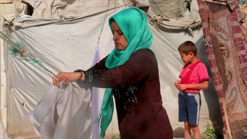 Suriye'de iç savaşın ilk yıllarında Beşşar Esed rejiminin Halep iline düzenlediği saldırılarda eşini kaybeden Emine Um Abdullah, İdlib'de sığındığı çadır kentte 6 çocuğuna bakabilmek için gecesini gündüzüne katarak çalışıyor. ( Muhammed Abdullah - Anadolu Ajansı )