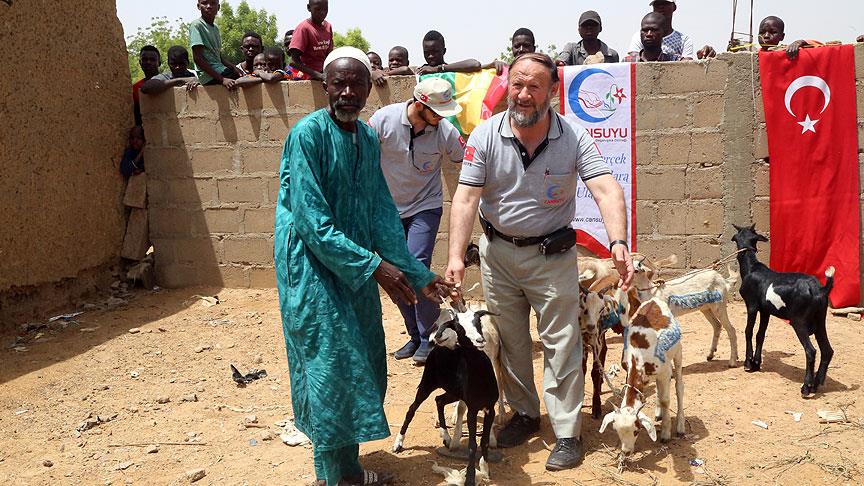 Afrika'nın tüm ülkelerine gitmenin amaçlandığı proje kapsamında, Mali'nin Segou kentinin kırsal kesimlerinde 120 aileye 240 keçi dağıtan Cansuyu ekibi, ailelerin yüzünü güldürdü.