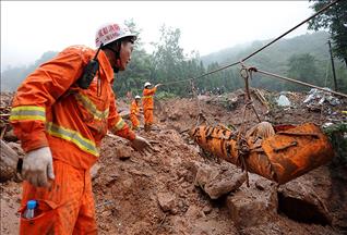 Şinhua ajansının haberine göre, ülkenin kuzeybatısındaki Şaanşi eyaletinin Vucou kentinde meydana gelen heyelanda, bölgedeki maden işçilerinin kaldığı 15 barınak ve 3 evin üzerine 1 milyon metreküp toprak kaydı. 40 kişinin kayıp olduğu belirtildi.