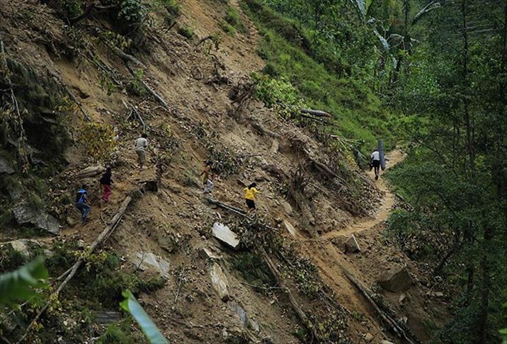Heyelan nedeniyle toprak altında kaldığı tahmin edilen 40 kişiden 4'ü kurtarıldı.