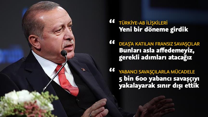 Erdoğan yabancı savaşçılar konusunda artık ciddi bir endişenin söz konusu olmadığını kaydederek, şöyle devam etti: