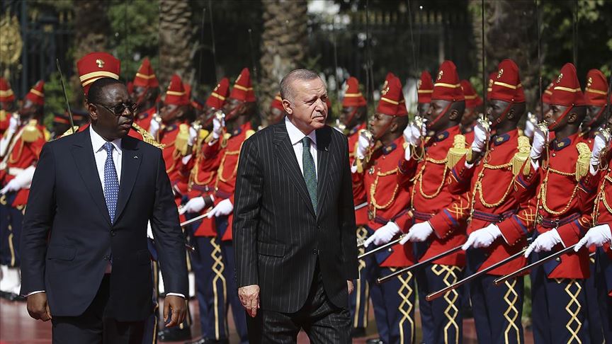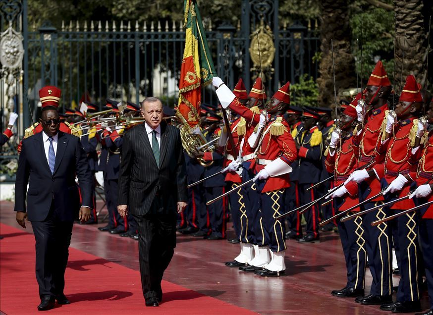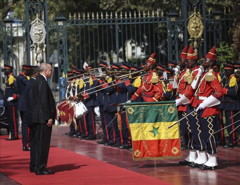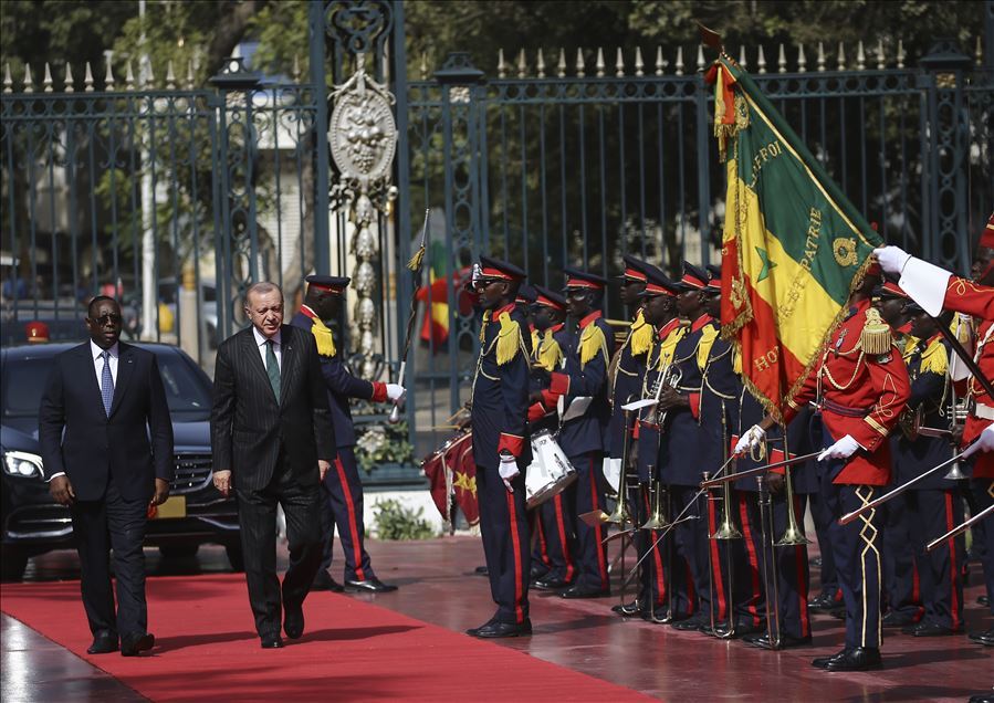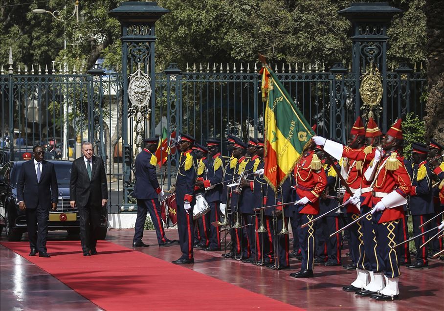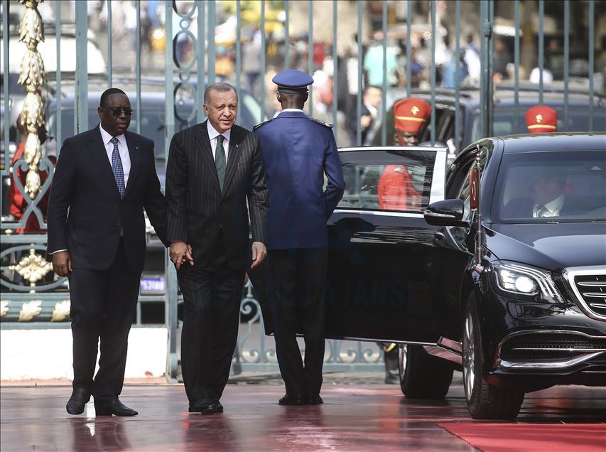 Türkiye Cumhurbaşkanı Recep Tayyip Erdoğan, Senegalli mevkidaşı Macky Sall'in davetine icabetle geldiği başkent Dakar'da resmi törenle karşılandı.