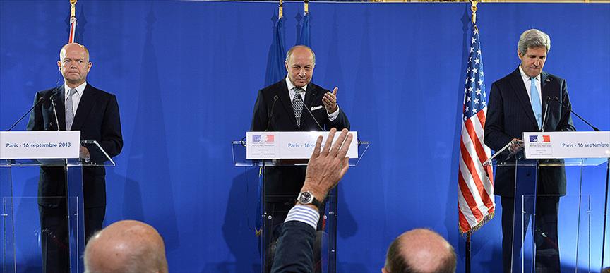 ABD Dışişleri Bakanı Kerry, Fransa Dışişleri Bakanı Laurent Fabius ve İngiltere Dışişleri Bakanı William Hague ile Paris'teki görüşmesinin ardından düzenlenen basın toplantısında, Suriye konusunda "diplomasinin başarısız olması durumunda, askeri seçeneğin hala masada olduğunu" vurguladı.