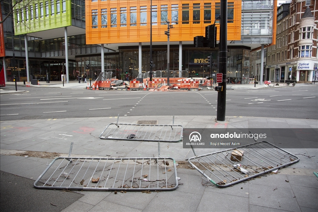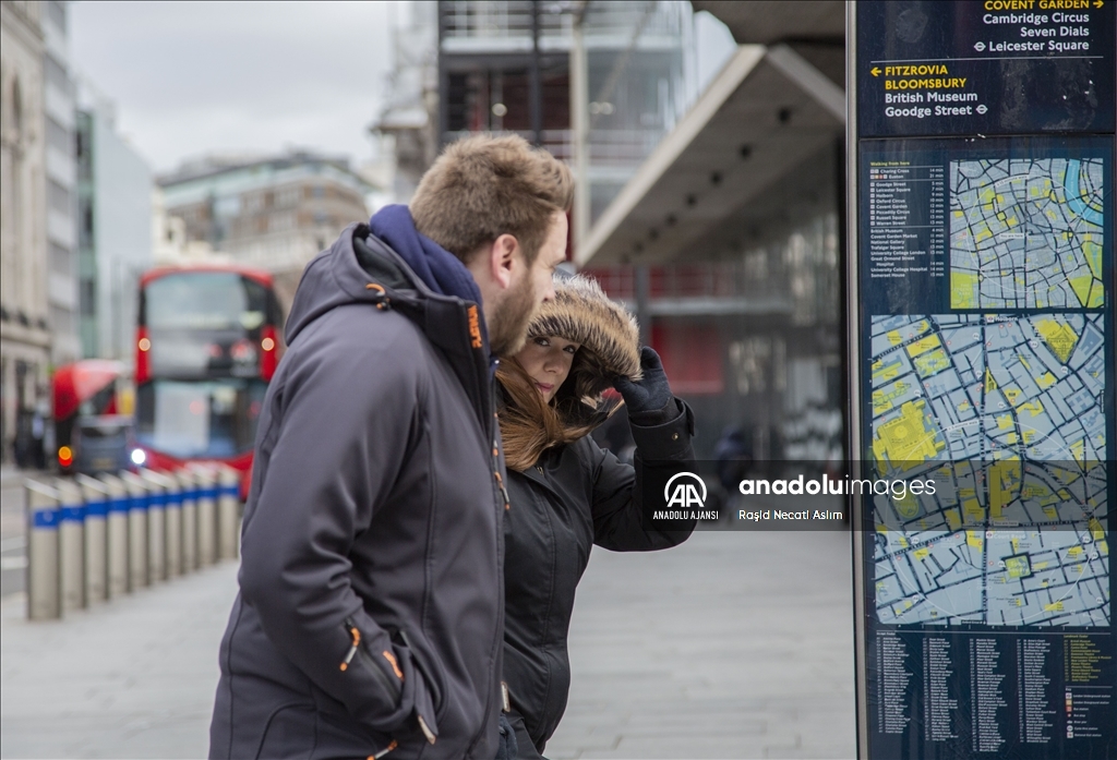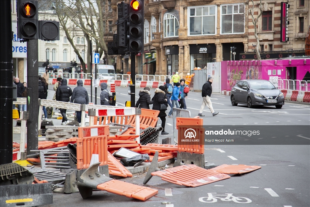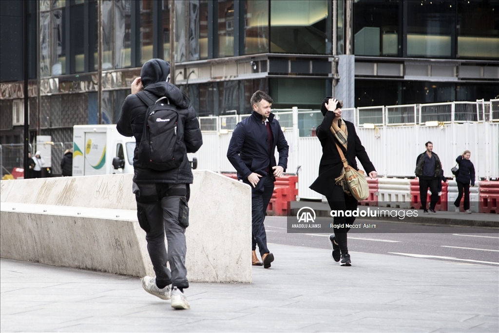 Başkent Londra'da fırtına nedeniyle vatandaşlar yolda yürümekte zorluk çekerken bazı şehirlerde ağaçlar yol kenarlarına devrildi.