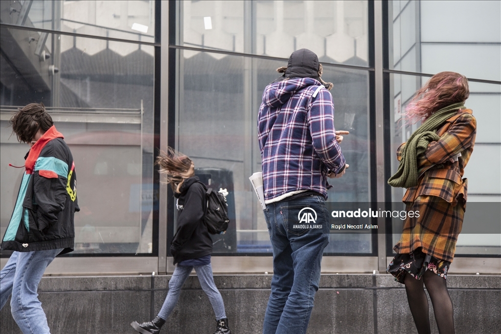 Saatteki hızı 130 kilometreye ulaşan rüzgar nedeniyle toplu taşıma araçlarında ve çok sayıda uçuşta seferler iptal edildi.