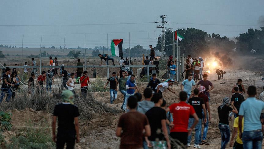 İsrail güçleri, Gazze sınırındaki gösterilere, gerçek ve plastik merminin yanı sıra göz yaşartıcı gaz kullanarak müdahale etti. İsrail askerlerinin gösteriye müdahalesine Filistinliler taş atarak karşılık verdi.