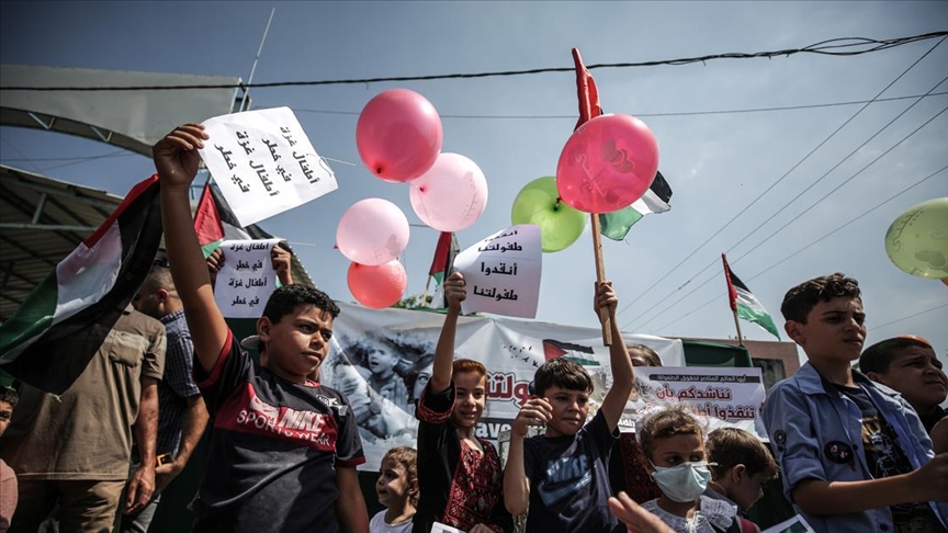 Gazze Şeridi'nin kuzeyindeki Beyt Hanun (Erez) Sınır Kapısı önünde Filistinli grupların çağrısıyla düzenlenen eyleme çok sayıda Filistinli çocuk katıldı.