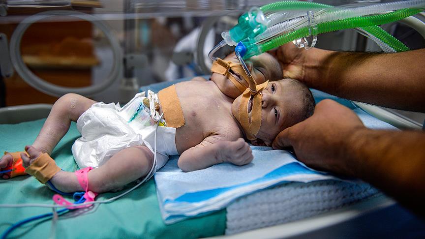 Gazze'de ailesinin ismini açıklamak istemediği genç bir kadının, Dar eş-Şifa Hastanesi'nde iki başlı bir kız bebek doğurduğu, yapışık ikizlerin ayrı kalp ve organlarla hayata tutunduğu belirtildi.
