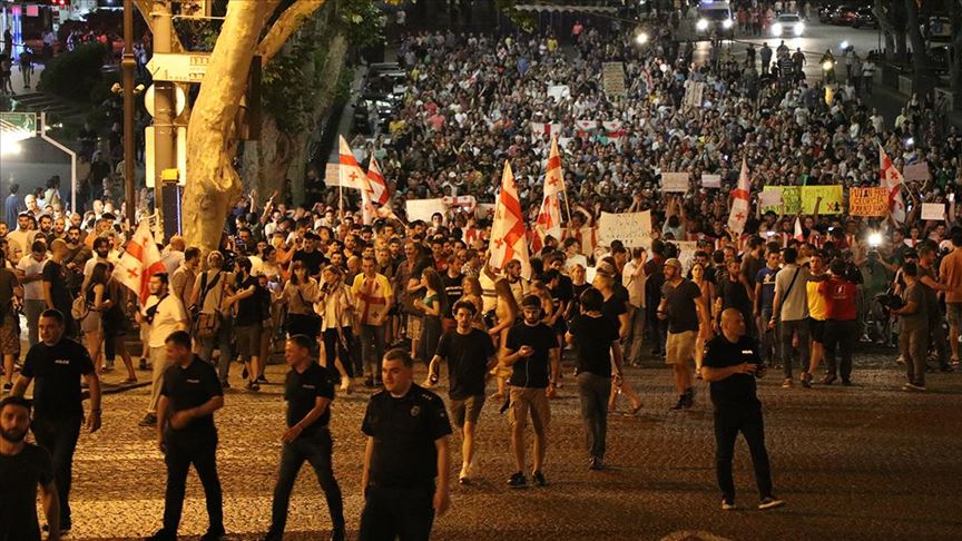 Başkent Tiflis'te parlemento binasının karşısında akşam saatlerinde bir araya gelen göstericiler, Gürcistan İçişleri Bakanı Giorgi Gakharia'nın istifasını talep etti.
