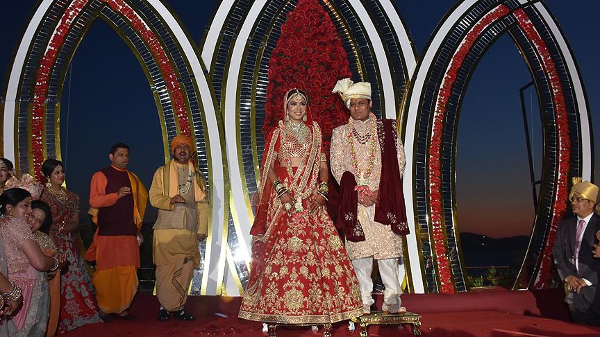 Düğüne katılan 600 davetli, Hindistan'ın geleneksel düğün kıyafetlerini giydi.
