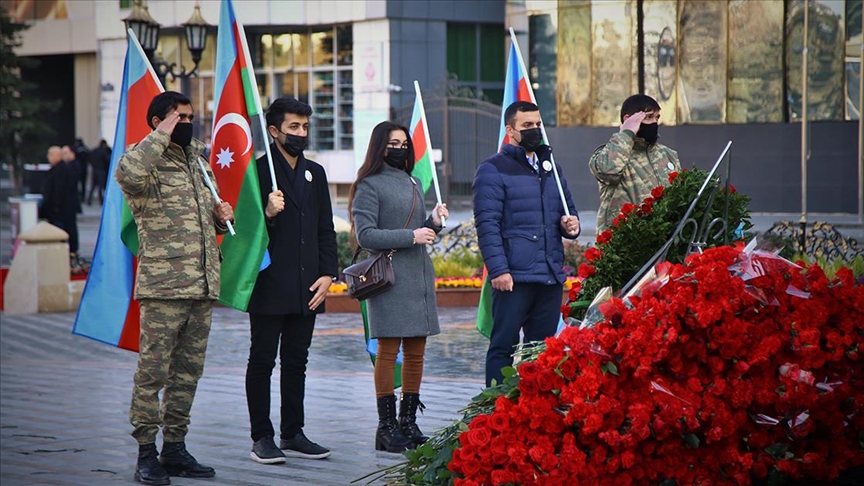 Azerbaycanlılar, Ermenilerin Hocalı'da katlettiği 613 kişiyi anmak için Bakü'deki Ana Feryadı Anıtı'na akın etti.