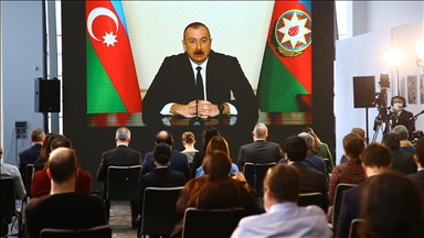 Bayramov, "Hocalı kurbanlarını her yıl mağlup halkın bireyleri olarak anıyorduk. Kahraman ordumuz topraklarımızı kurtardı. Artık bu yıl galip bir halk olarak şehitlerimizi anıyoruz." ifadelerini kullandı.