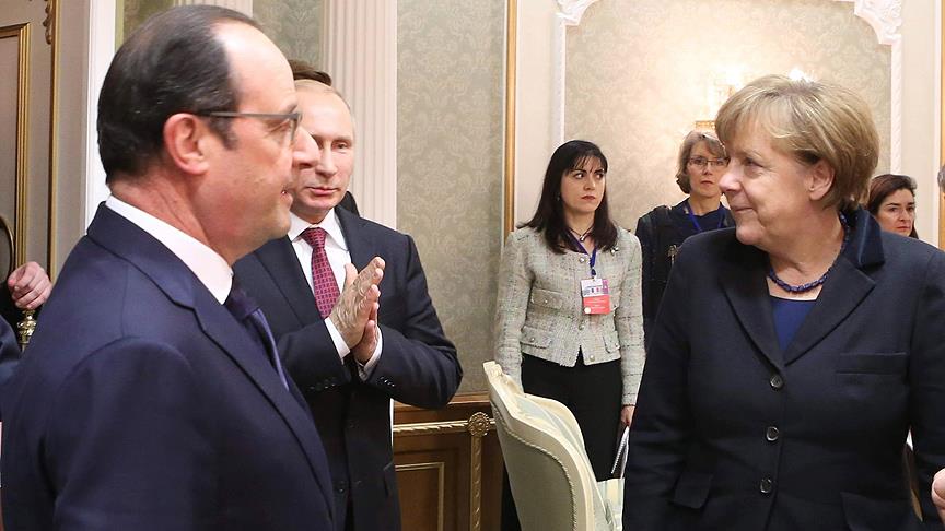 Merkel’in Suriye konusunda Hollande ile aynı görüşleri paylaştığı belirtilen açıklamada, Ukrayna konusunda ise liderlerin düzenlenecek zirvenin, krizin sona erdirilmesi için bir çözüm önermesi konusunda hemfikir oldukları kaydedildi.