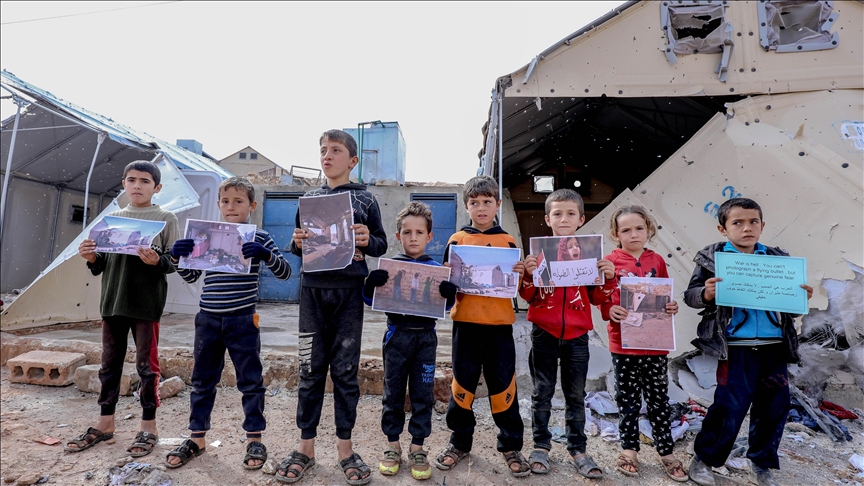 Esed rejimi ve destekçilerinin sivillere yönelik saldırılarına dikkati çekmeyi amaçlayan gösteri, İdlib'in kuzeyinde 6 Kasım'da rejim güçlerince bombalanan Maram Kampı'nda düzenlendi.