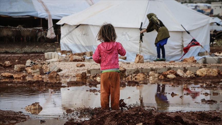 Suriye'nin kuzeybatısındaki İdlib ilinde Beşşar Esed rejimi ve destekçilerinin saldırılarından kaçarak sığındıkları çadırları sağanak nedeniyle su basan siviller, yaşam mücadelesi veriyor.