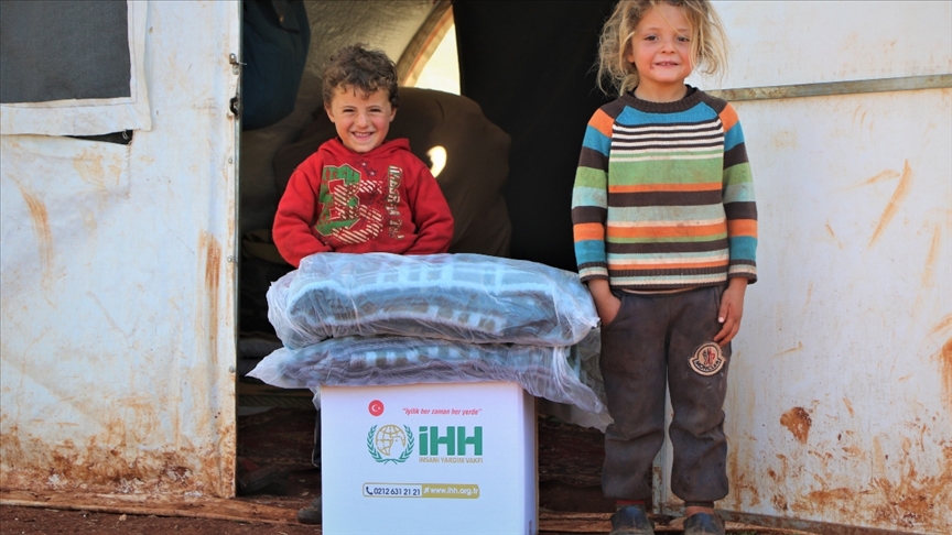 İHH, İdlib'deki ailelere gıda ve battaniye yardımında bulundu