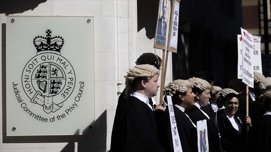 Başkent Londra'daki Yüksek Mahkemenin önünde toplanan avukatlar, Adalet Bakanlığının eylül sonunda yapacağı yüzde 15'lik ücret artışına itiraz ederek yıllarca süren fon kesintilerinin telafisi için Ceza Avukatları Derneğinin (CBA) yüzde 25'lik artış talebini destekledi.