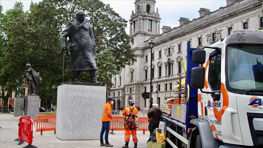 Ülkenin 1940-1945 ve 1951-1955 yıllarında iki dönem başbakanlığını yapan Churchill'in heykelinin üzerine pazar günü yapılan ırkçılık karşıtı gösterilerde "O bir ırkçıydı" yazılmıştı.