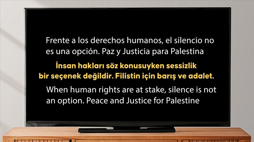 RTVE, Eurovision Şarkı Yarışması canlı yayınına geçmeden önce İspanyolca ve İngilizce dillerinde "İnsan hakları söz konusu olduğunda, sessizlik bir seçenek değildir. Filistin için barış ve adalet." yazılı bir mesaj yayımladı.