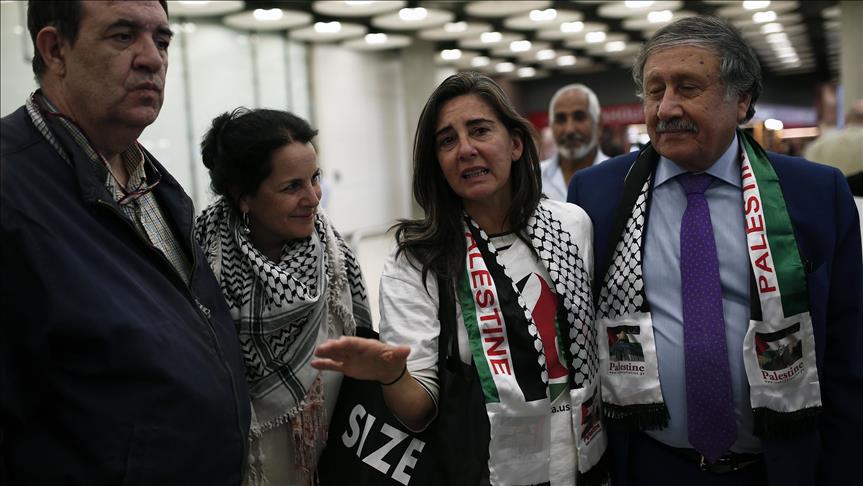 Gemide bulunan ve iki gün İsrail tarafından alıkonulduktan sonra bugün Madrid'e gönderilen İspanyol aktivist Sandra Barrilaro'yu Madrid Adolfo Suarez Barajas Havalimanı'nda arkadaşları ve "Rumbo a Gaza" adlı sivil toplum kuruluşunun üyeleri karşıladı.