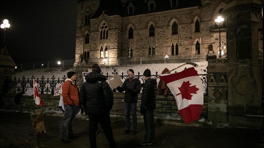 Ottawa polisi, göstericileri şehir merkezinden uzaklaştırmasının yakın olduğunu açıklamasından yaklaşık iki saat sonra bazı kamyon şoförlerini gözaltına almaya başladı.