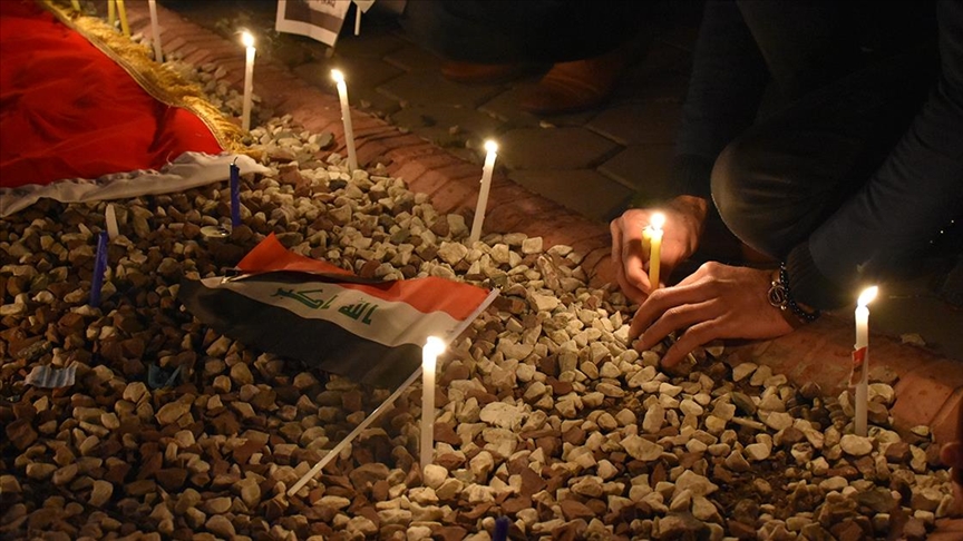 Irak'ta, Kerkük Valilik Meydanı'nda toplanan vatandaşlar, Irak bayrağı açıp mumlar yakarak saldırıda hayatını kaybedenleri andı.