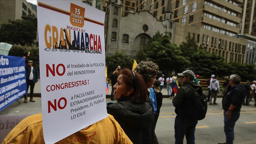 Cumhurbaşkanı Gustavo Petro'ya tepki gösteren kalabalık gruplar, başkent Bogota'nın tarihi Bolivar Meydanı olmak üzere birçok kentte yasa karşıtı sloganlar attı.