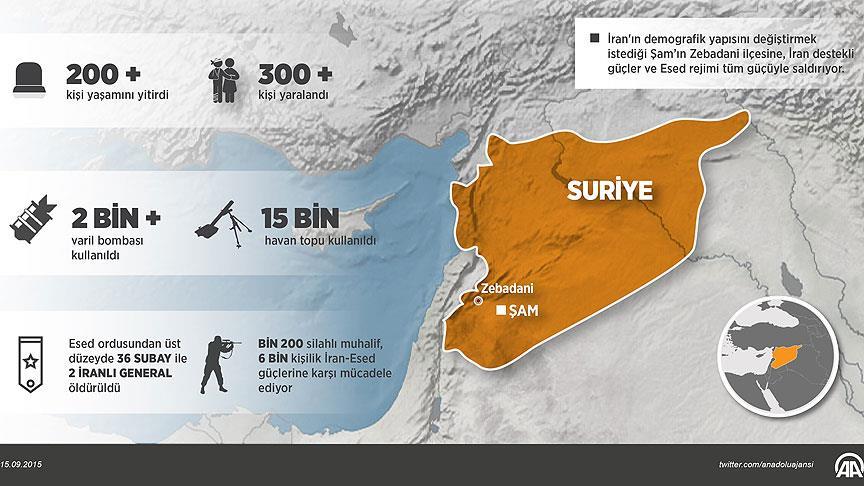 Yaklaşık 75 gündür tüm güçleriyle Zebadani'ye saldıran Esed ve İran destekli Hizbullah militanları, Sünni nüfusu göçe zorlayarak buraya Şam'daki Şiileri yerleştirmeyi planlıyor.