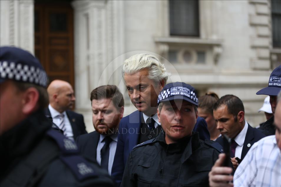 Hollandalı siyasetçi Wilders de alana polisin güvenlik kordonu içinde geldi ve ayrıldı.