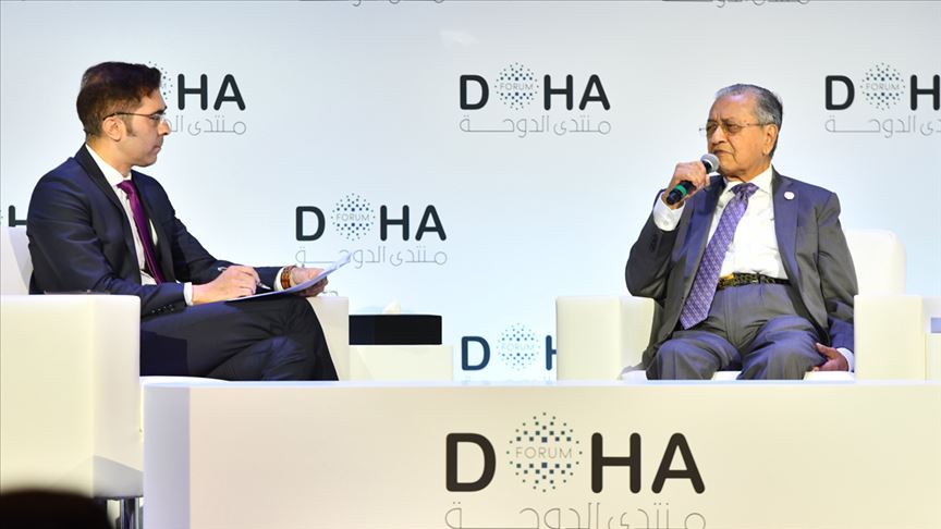 Katar ziyareti kapsamında ülkenin başkenti Doha'da Emir Şeyh Temim bin Hamed Al Sani'nin ev sahipliğinde yapılan 19. Doha Forumu'na katılan Malezya Başbakanı Mahathir Muhammed, uluslararası gelişmelere dair değerlendirmelerde bulundu.