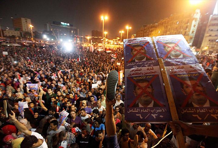Başkent Kahire'deki ünlü Tahrir Meydanı'nda yapılan Mursi karşıtı gösterilerde zaman zaman ABD aleyhine de sloganlar atılırken, 2011 yılında aynı meydanda başlayan gösterilerin ardından istifa etmek zorunda kalan eski Cumhurbaşkanı Hüsnü Mübarek'in resimlerinin satıldığı ve dağıltıldığı iddia edildi.