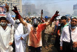 Açıklamada, "Ülkedeki şiddet olayları nedeniyle rejimin ve emniyetin tehlikeye girmesi, kamu malına ve özel mülklere zarar verilmesi, radikal gruplar ve cemaatler tarafından vatandaşlarının kanının akıtılması sebebiyle Sayın Cumhurbaşkanı Adli Mansur, Bakanlar Kurulunun da onayıyla ülke çapında 14 Ağustos 2013 tarihi saat 16.00'dan itibaren geçerli olmak üzere 1 ay süreyle olağanüstü hal ilan etti" denildi.