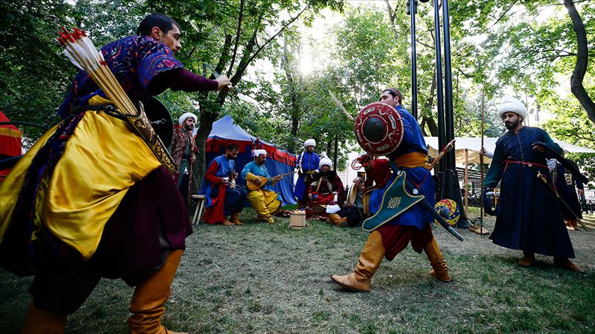 “Ordugah Tarihi Canlandırma Takımı” grubu, sembolik olarak kurulan karargahtaki otağda Osmanlı askeri hayatı ve savaş tekniklerinden örnekler canlandırdı.
