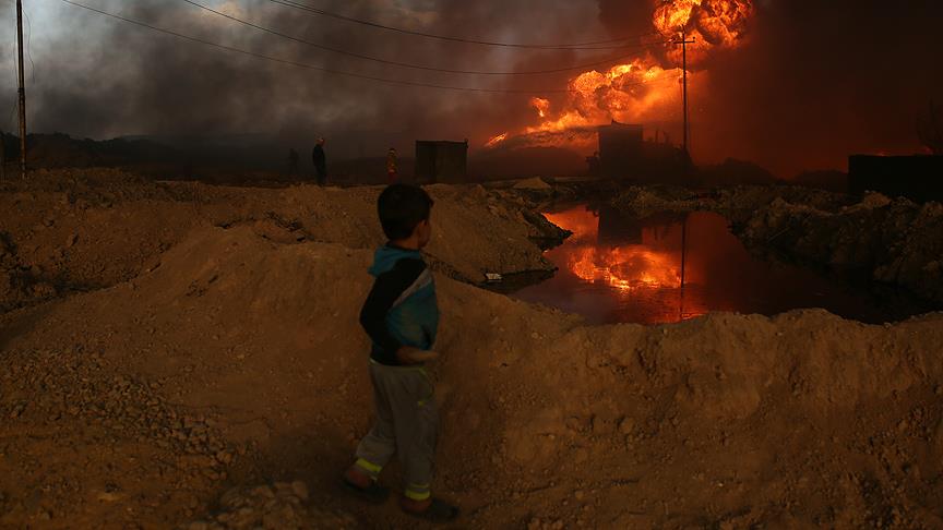 Irak'ın Musul kentine bağlı en büyük nahiyesi olan Kayyara'nın terör örgütü DEAŞ'tan kurtarılmasının ardından bölgedeki petrol kuyularında çıkan yangın devam ediyor.