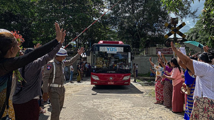 Haberde, serbest bırakılan mahkumlar arasında görevden alınarak hapsedilen devrik lider Aung San Suu Çii’nin parti sözcüsünün de yer aldığı ifade edildi.