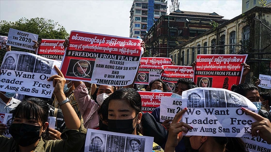 Myanmar ordusu, 8 Kasım 2020 seçimlerinde hile yapıldığı iddiaları üzerine 1 Şubat'ta yönetime el koymuş, bir yıllığına olağanüstü hal (OHAL) ilan etmişti.